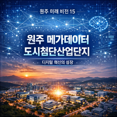 원주 메가데이터 도시첨단산업단지는 ICT·바이오 융합으로 중부권 디지털 혁신 허브로 성장하며, 청년 일자리 창출과 글로벌 경쟁력 확보를 통해 한국판 실리콘밸리로 도약하는 미래 비전을 제시합니다.